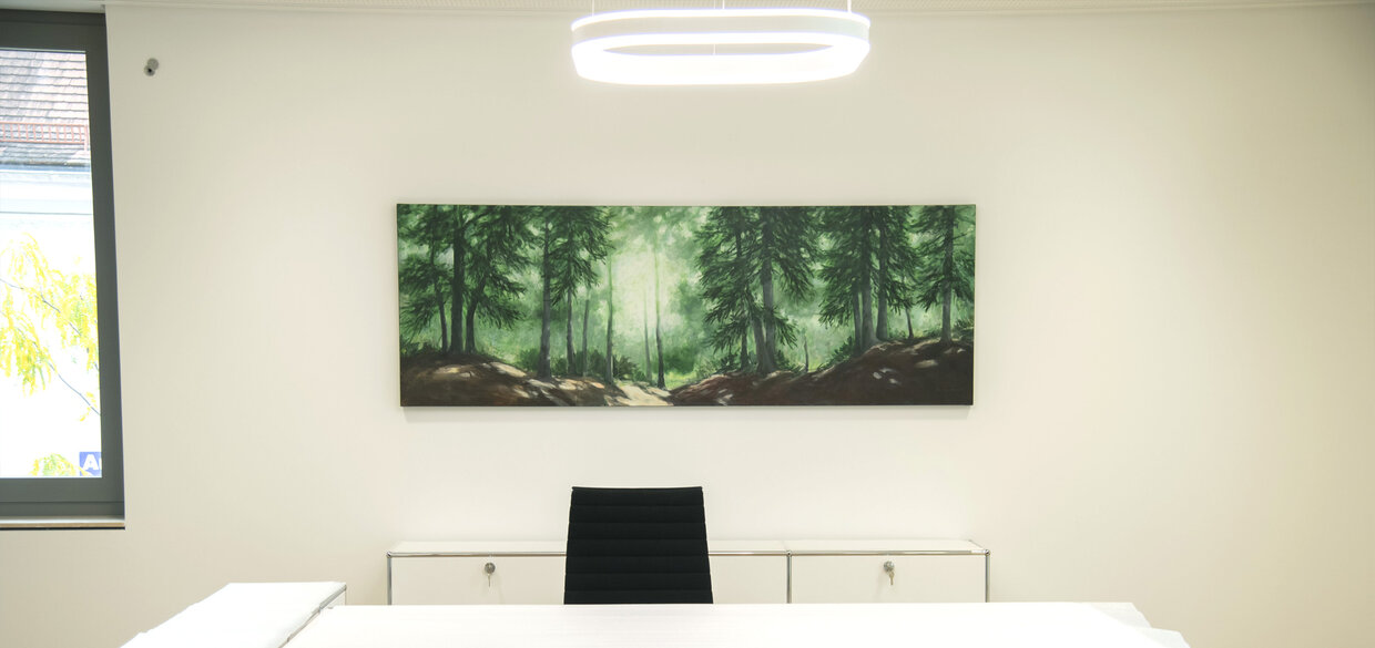 Art meets architecture at the new District Office in Altötting. I had the great honor of creating three paintings for the executive offices of the District Administrator. A fascinating dialogue between science and art – right at the heart of public administration.